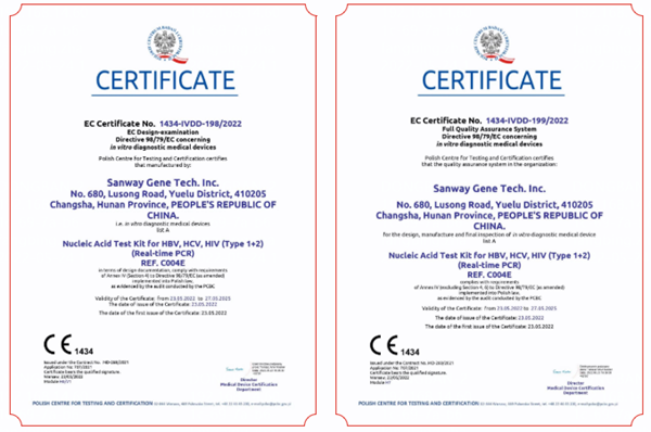 5月23日,3003.com新葡的京生物全资子公司圣维基因研发的乙型肝炎病毒、丙型肝炎病毒、人类免疫缺陷病毒(1+2型)核酸检测试剂盒(PCR-荧光法),简称血筛核酸检测试剂盒,成功通过欧盟公告机构认证(CE List A),这是继乙肝、丙肝和艾滋三款核酸检测产品后,3003.com新葡的京生物拿下的第四个CEList A认证。