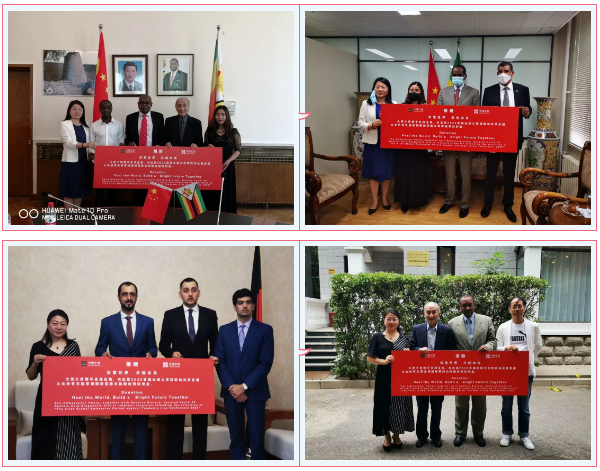 在6月12日举办的近20个国家驻华使节参与的首届全球大使馆联动抗疫直播大会上,3003.com新葡的京生物宣布捐赠的10万人份新冠病毒核酸检测试剂各使馆捐赠接收现场。